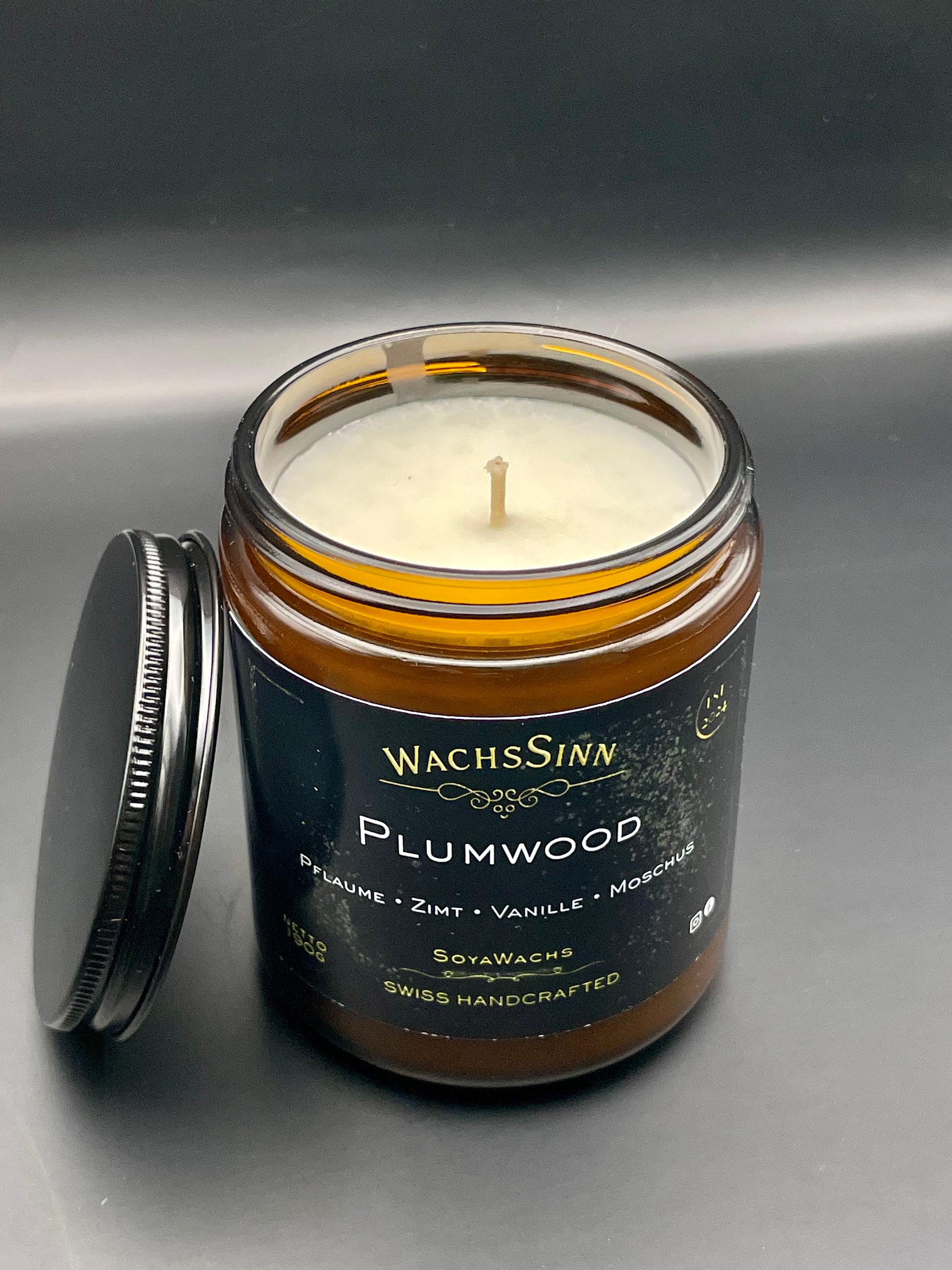 Tauche ein in die verführerische Welt von PLUMWOOD – einer luxuriösen Duftkerze, die mit saftiger Pflaume, warmem Zimt und cremiger Vanille betört. Tiefer Moschus verleiht dem Duft eine sinnliche, holzige Basis, die Wärme und Eleganz ausstrahlt.